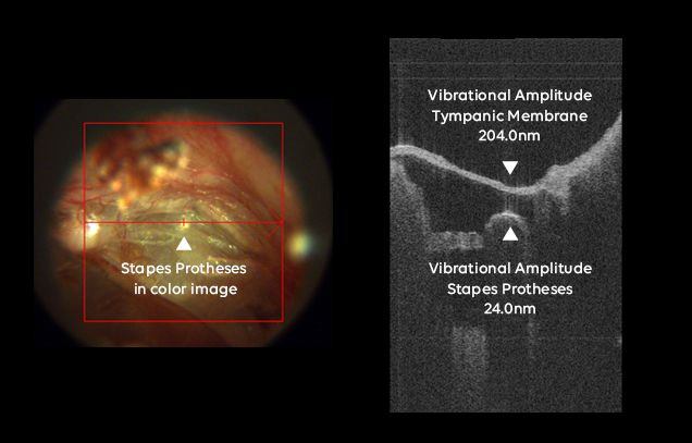 Aurisvue is also capable of measuring nanometer scale vibrations of the tympanic membrane and hearing bones. A sound stimulus incorporated in our handheld probe can emit pure tones in the frequency range of 500Hz to 20.000Hz to stimulate movement of the entire ossicular chain. The ability to measure these nanometer-scale amplitudes of each hearing bone separately is unique compared to the existing standard of care.